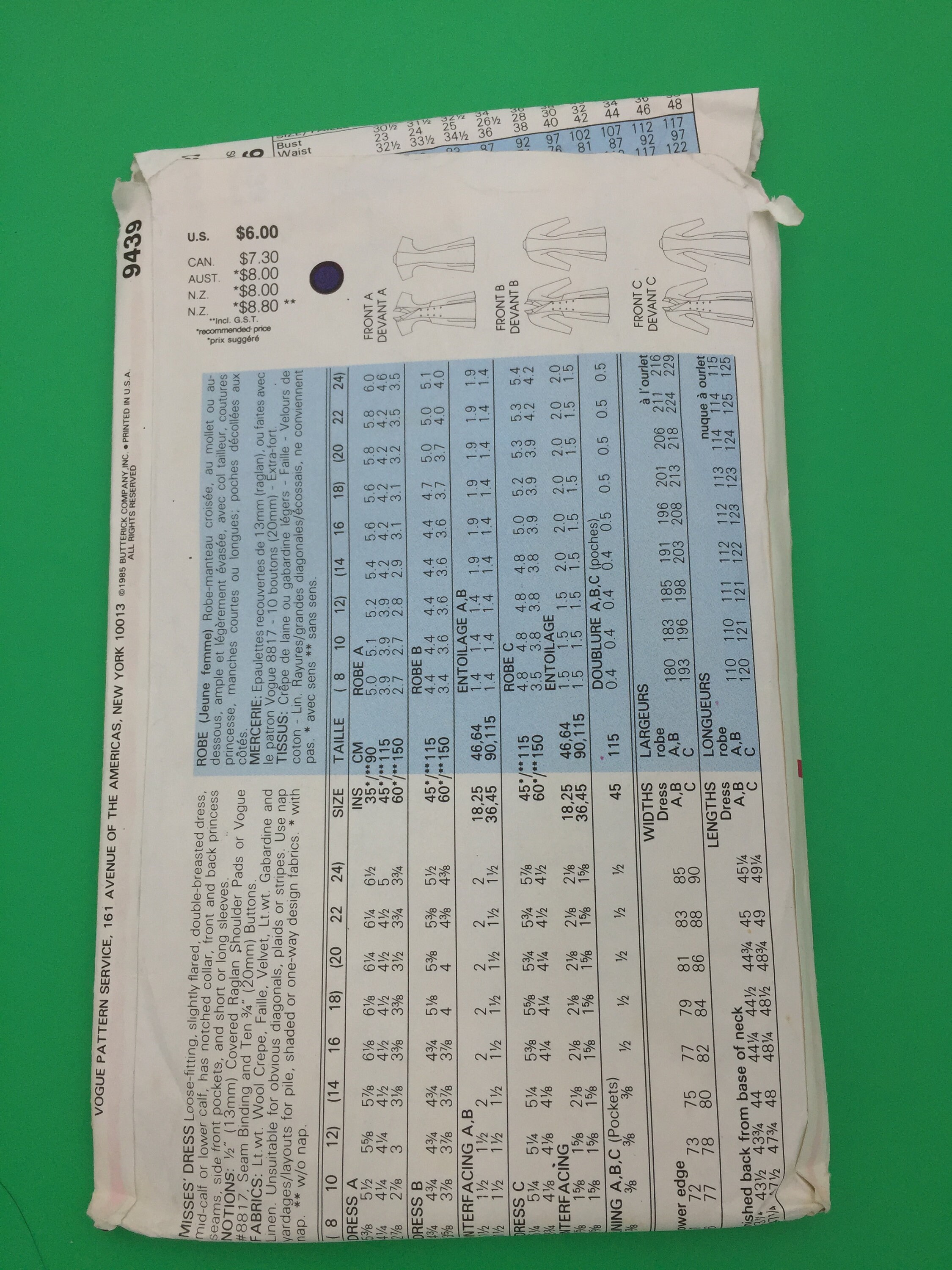 9439 Vintage 1985 Vogue Sewing Pattern Misses Dress Sizes Etsy